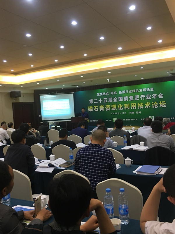 第二十五屆全國磷復肥行業(yè)年會于2018年4月25-27日在河南鄭州召開,山東先羅陳加印總經理就磷石膏制備無水II型高強石膏新型建材技術路線的研究與應用與業(yè)內專家進行技術交流。