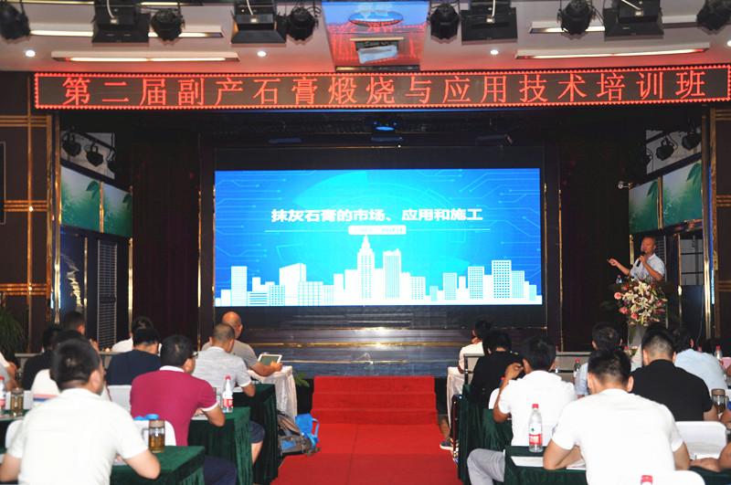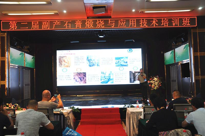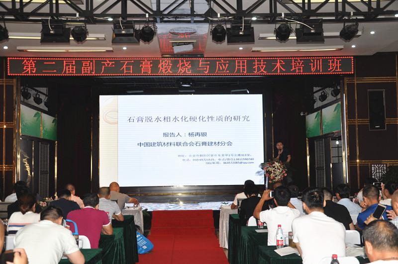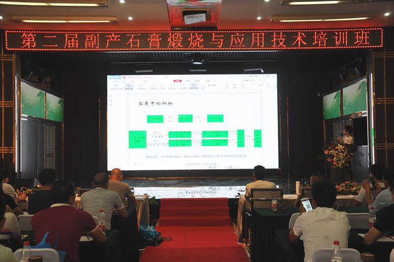 楊再銀秘書(shū)長(zhǎng)授課《石膏的水化硬化機(jī)理、想成分對(duì)建筑石膏的影響》。