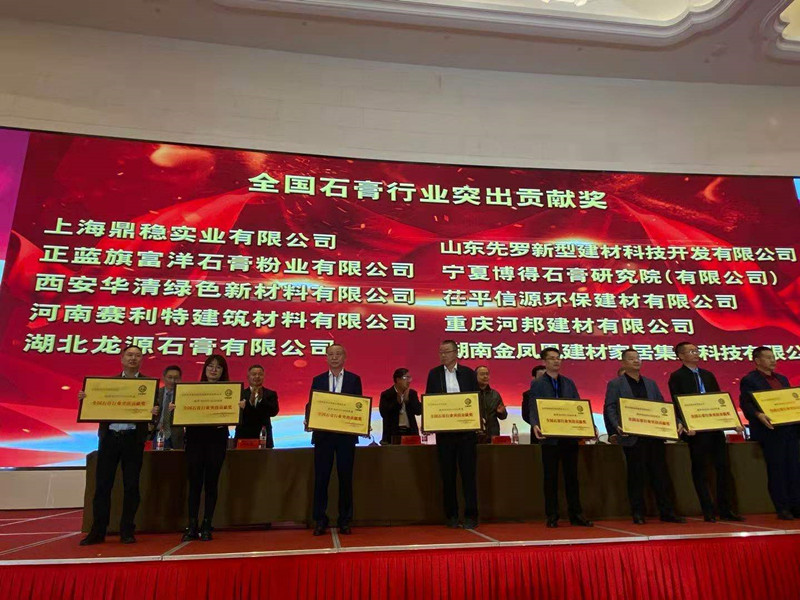 予山東先羅總經理陳加印先生“協(xié)會工作先進個人”榮譽稱號,授予山東先羅“全國石膏行業(yè)突出貢獻獎”稱號。