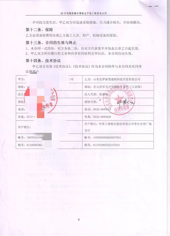 山東先羅和湖北新洋豐農(nóng)業(yè)科技股份有限公司采用新工藝、新技術(shù)磷石膏粉生產(chǎn)線達(dá)成合作協(xié)議,共同研發(fā)國