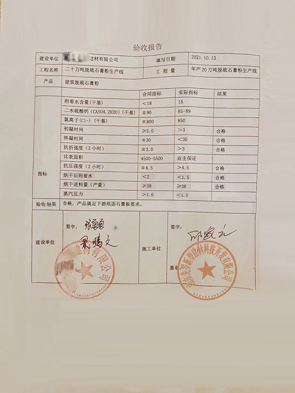 硫石膏粉生產(chǎn)線項(xiàng)目調(diào)試驗(yàn)收成功!